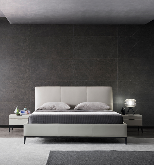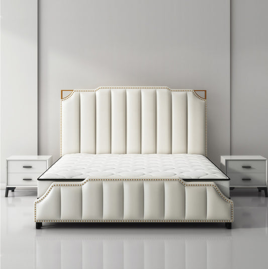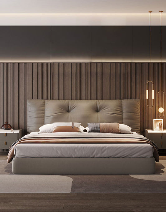 سرير بسيط من الجلد الطبيعي الناعم الفاخر بحجم كوين/كينج
