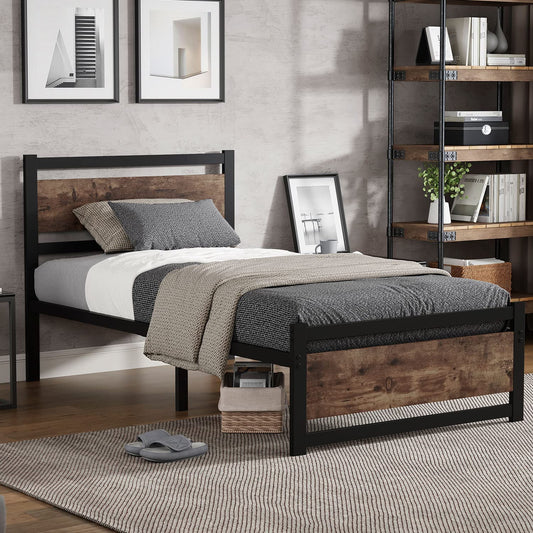سرير خشبي ومعدني من Inhabit مقاس فردي ومزدوج