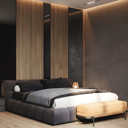 سرير مخملي خشبي هندسي من Inhabit Lining Line Solid X مقاس فردي ومزدوج