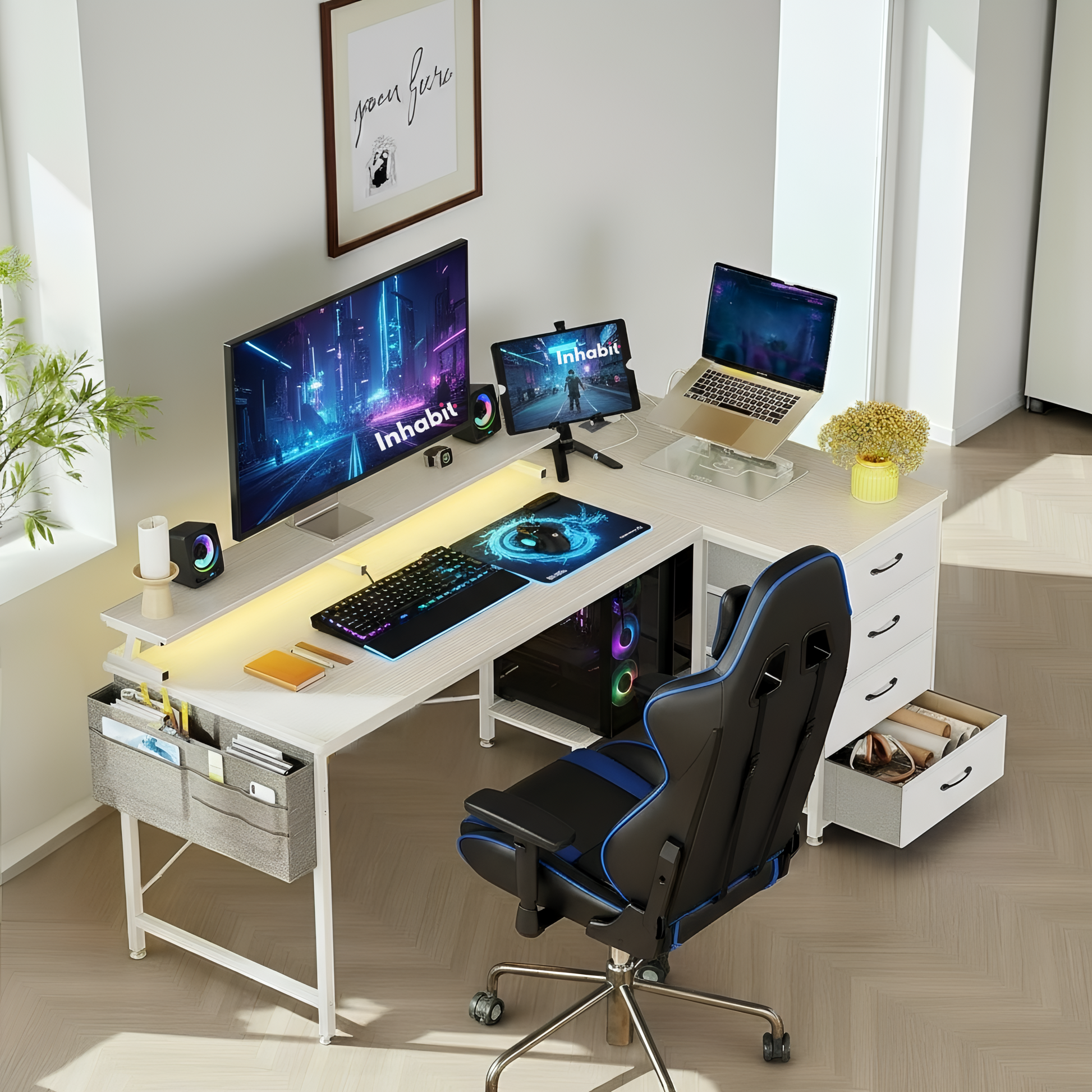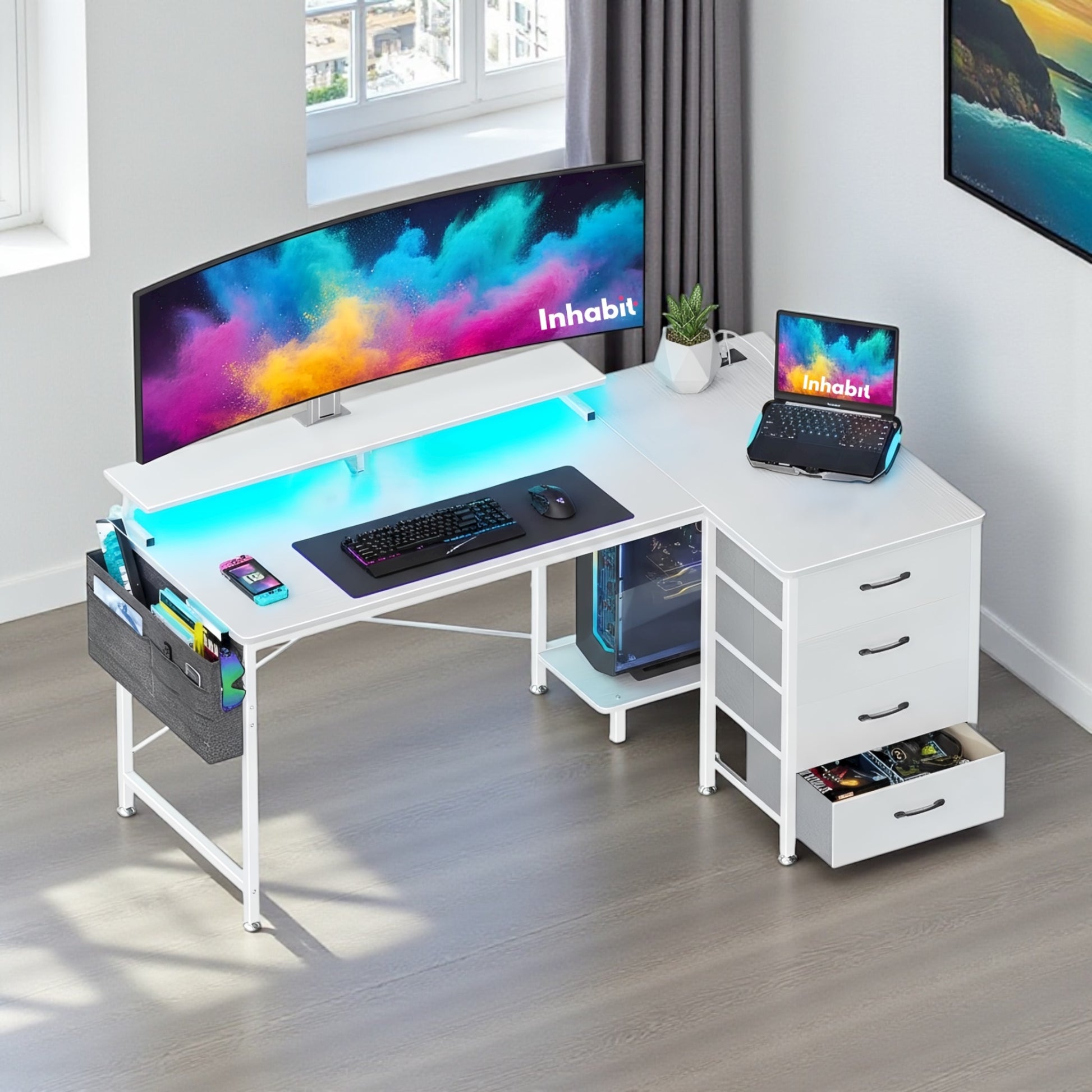 مكتب Inhabit Spider Plus على شكل حرف L مقاس 160 سم مع أدراج ورفوف