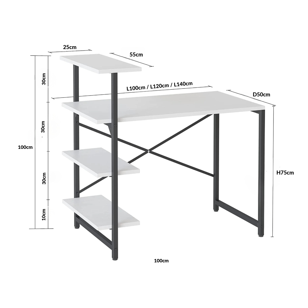 مكتب كمبيوتر من شركة Inhabit بارتفاع 100 سم مع أرفف جانبية