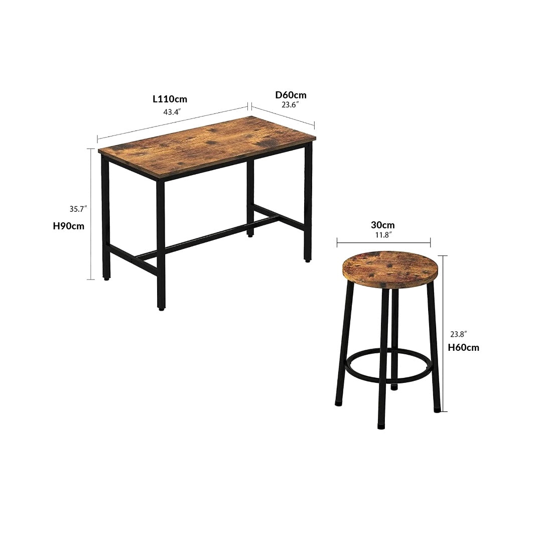 طاولة مرتفعة: عرض 110 سم × عمق 60 سم × ارتفاع 90 سم