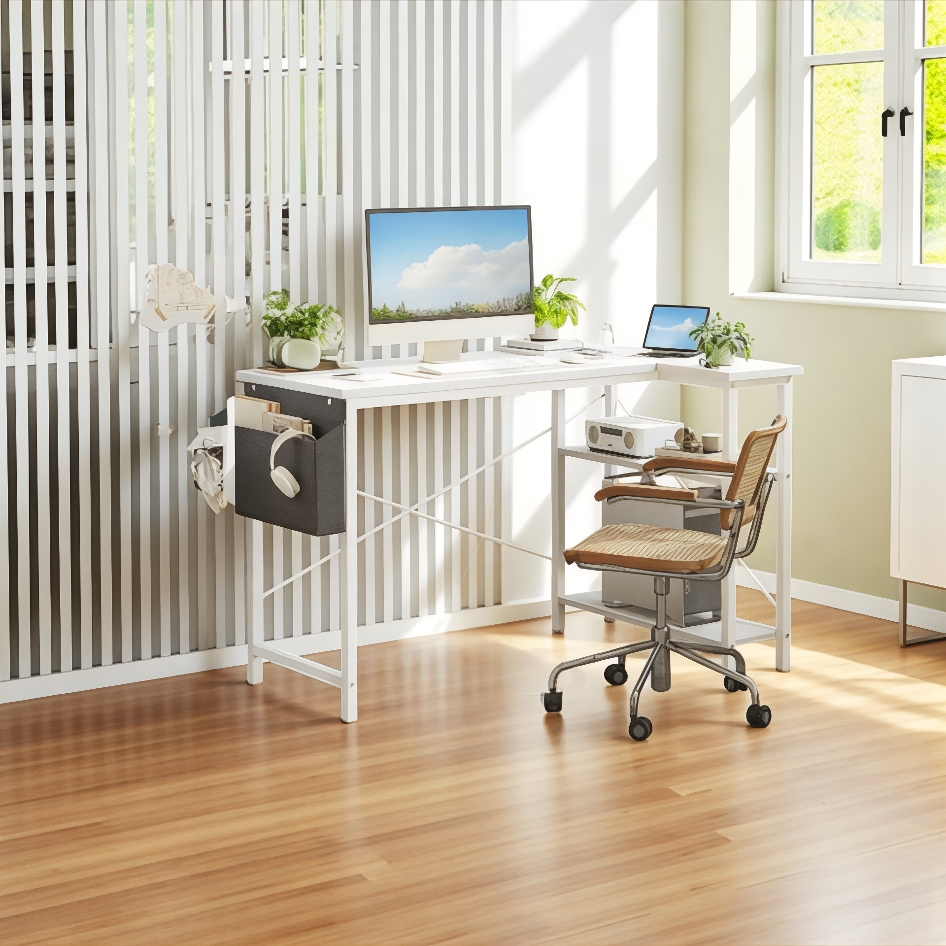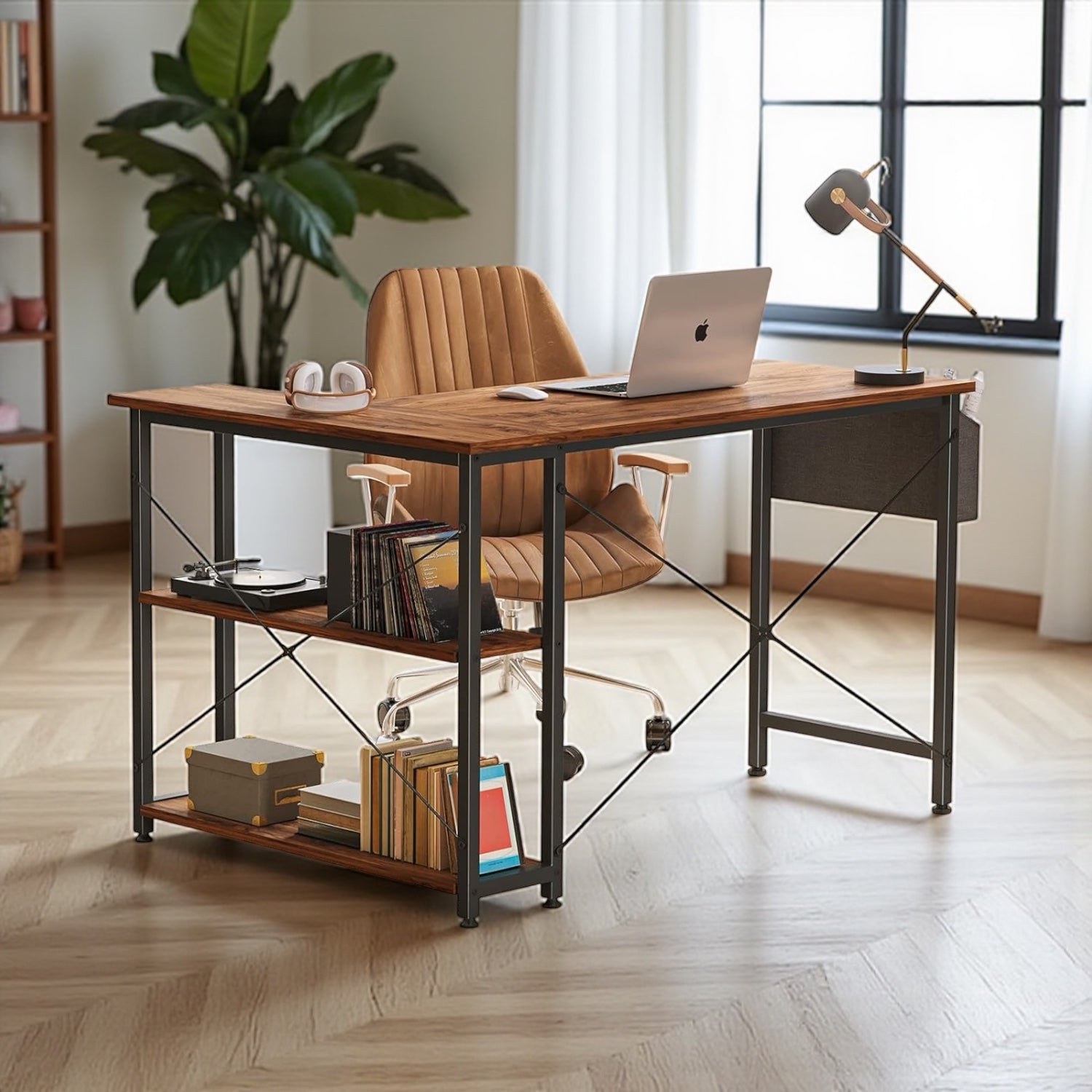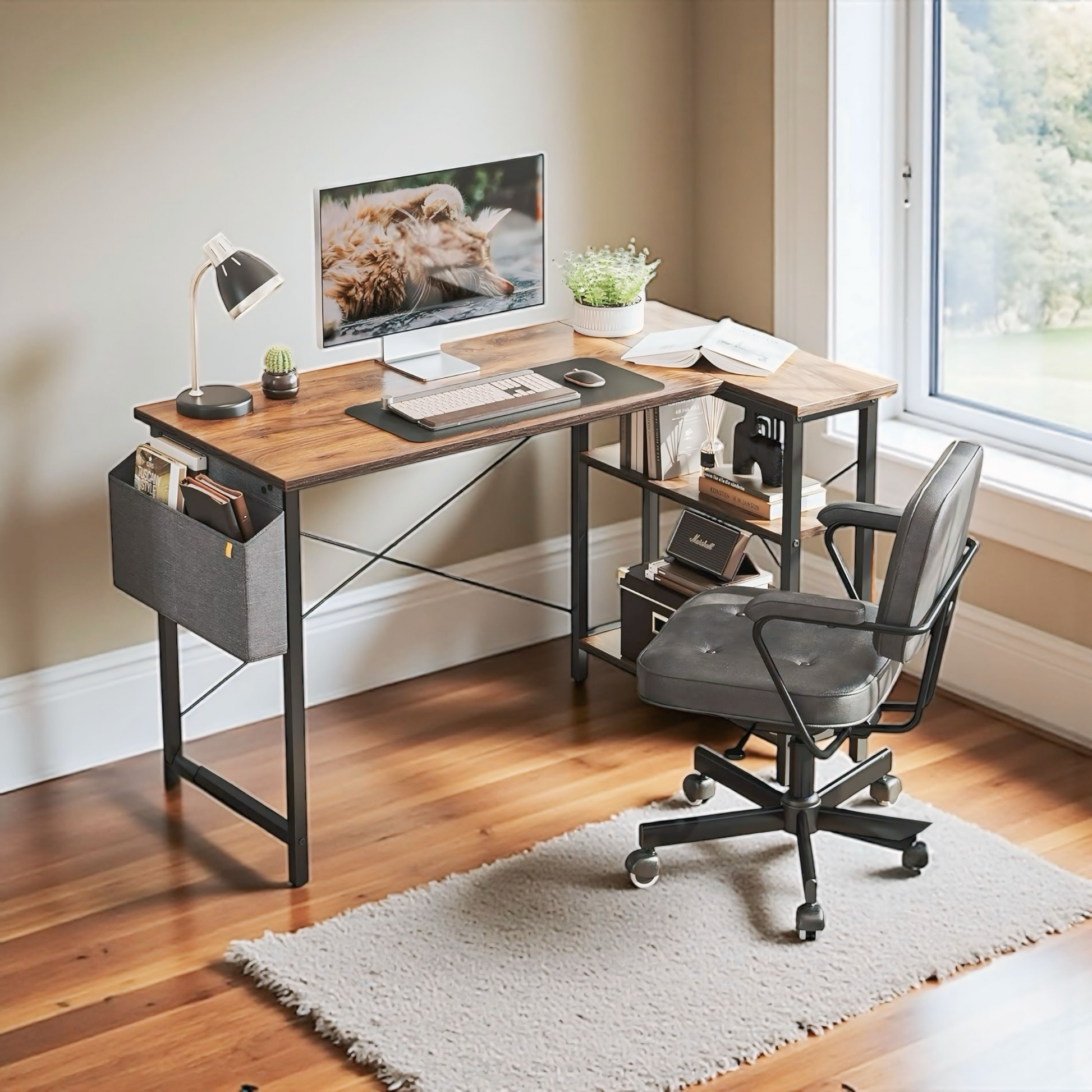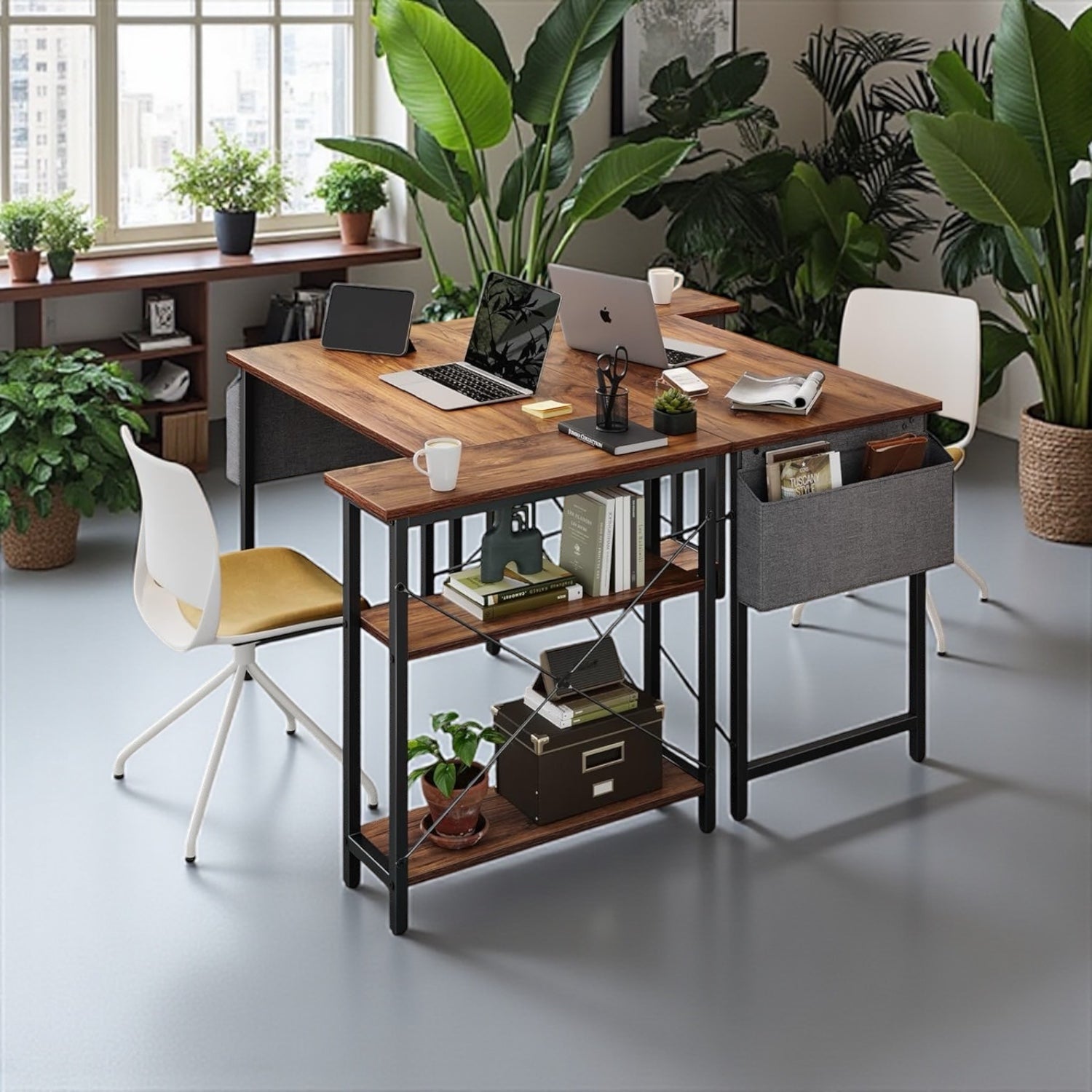 مكتب على شكل حرف L بارتفاع 120 سم مع رفوف من مستويين