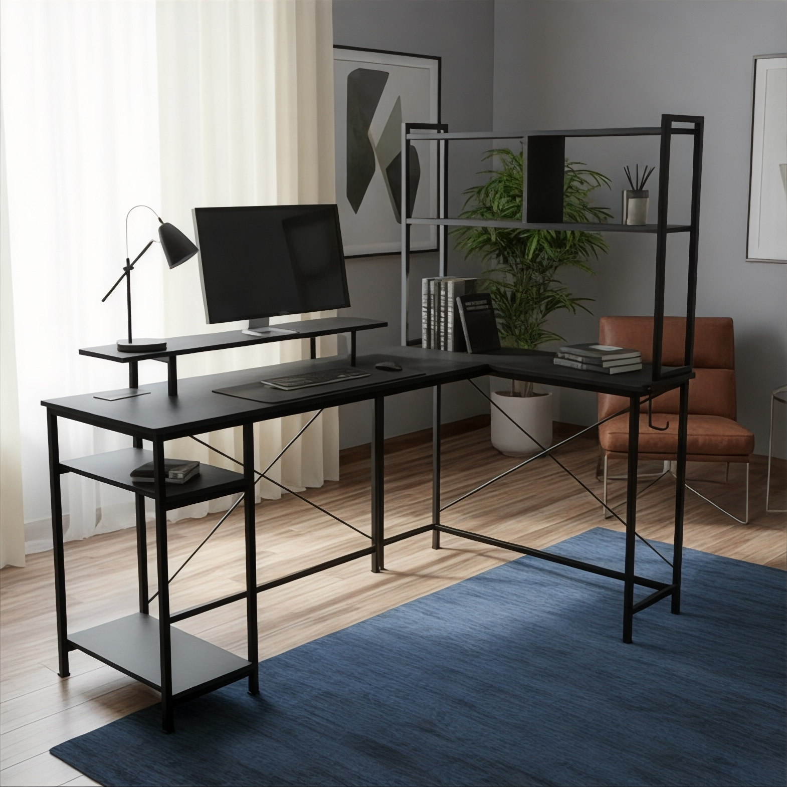 مكتب على شكل حرف L من Inhabit Hutch مقاس 150 سم مزود بإضاءة LED مدمجة بثلاثة ألوان