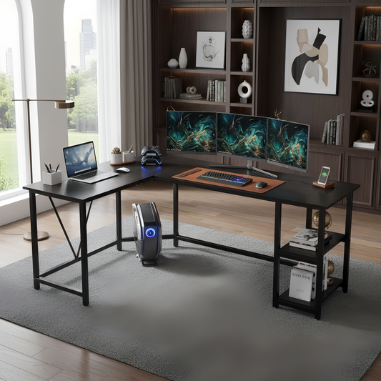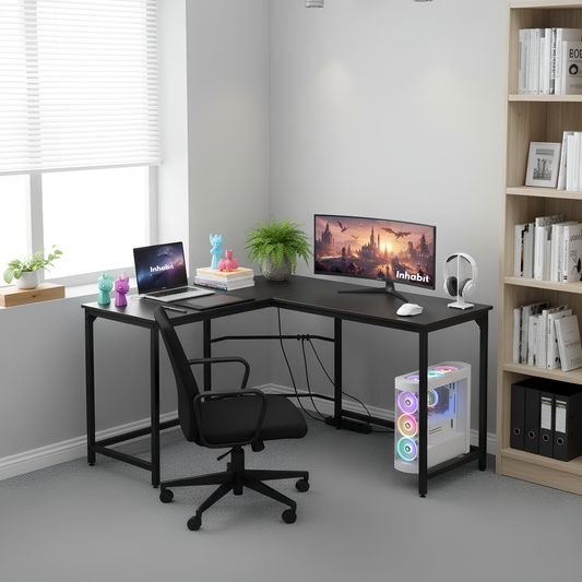 Inhabit Nexus 135cm Office, Home, Gaming L-Shaped Desk With Drawers & Shelves