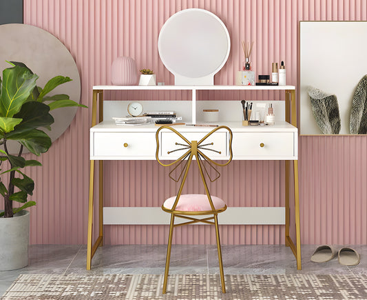 Inhabit Luxurious Modern Makeup Vanity/ Dresser With 3 Drawers & Shelves