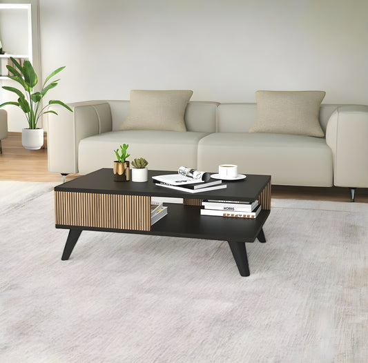 Regular price From LE 2,950.00 EGPRegular priceUnit price / perLE 3,500.00 EGPSale price From LE 2,950.00 EGPInhabit Black X Rustic Brown Wood Nightstand With Drawer & Shelf