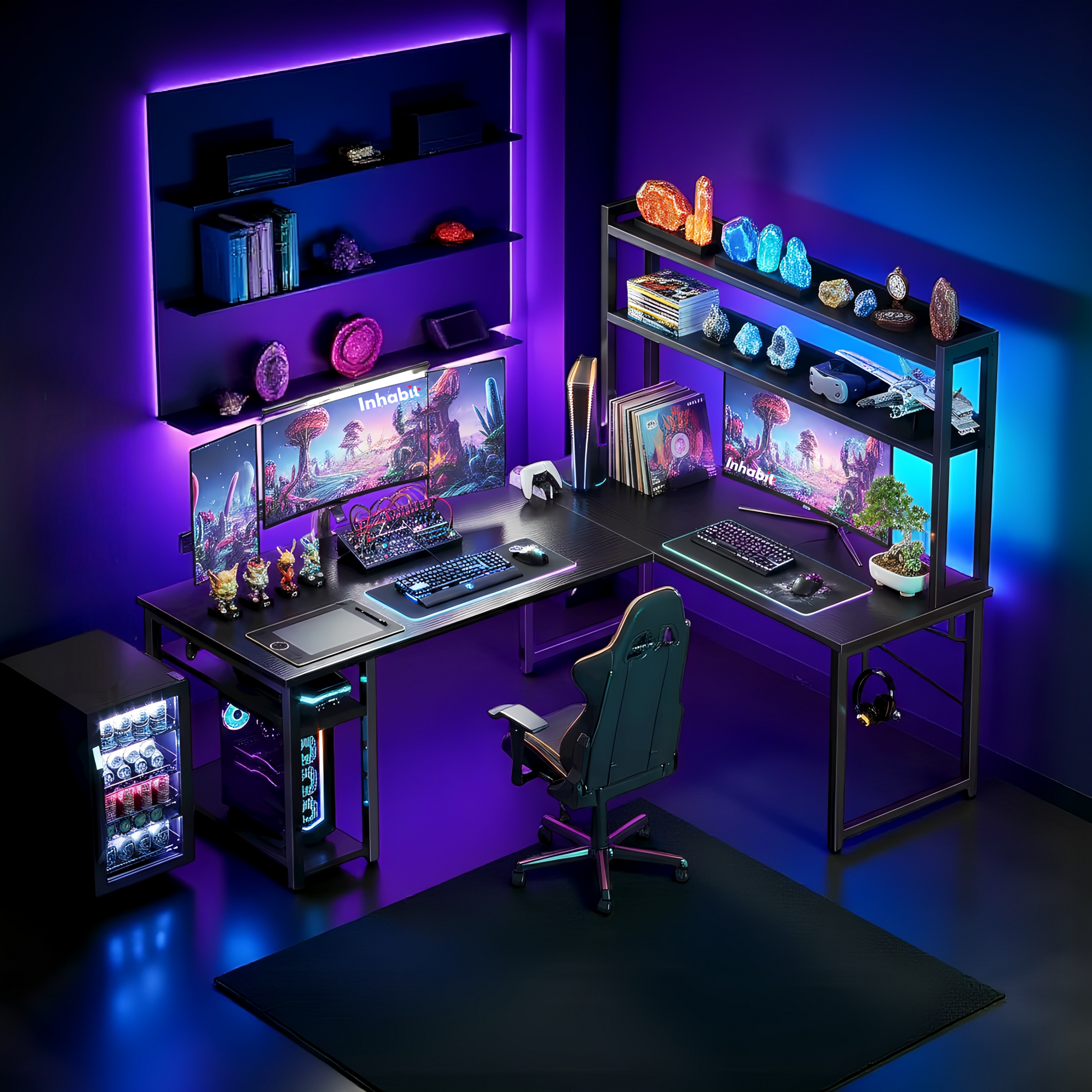 Inhabit Velaro Hutch L-Shaped Desk With Built In LED